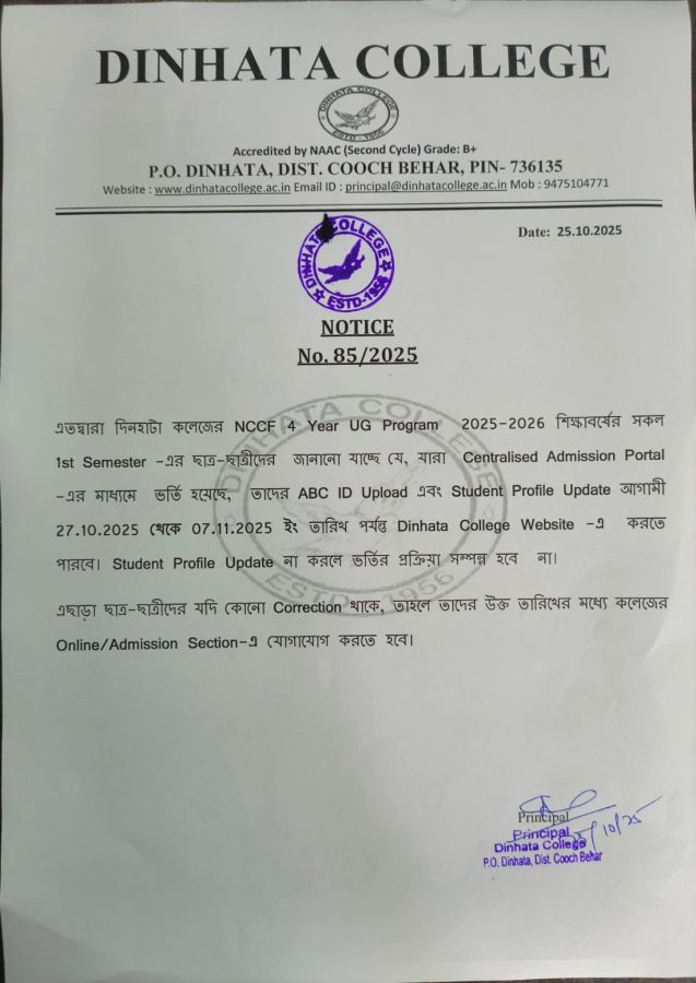 UG NCCF 1st Semester 2025-2026 Student Profile Update Notice.